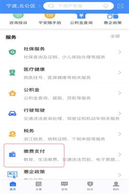 2.2进入页面后,选择首页的“缴费支付”: