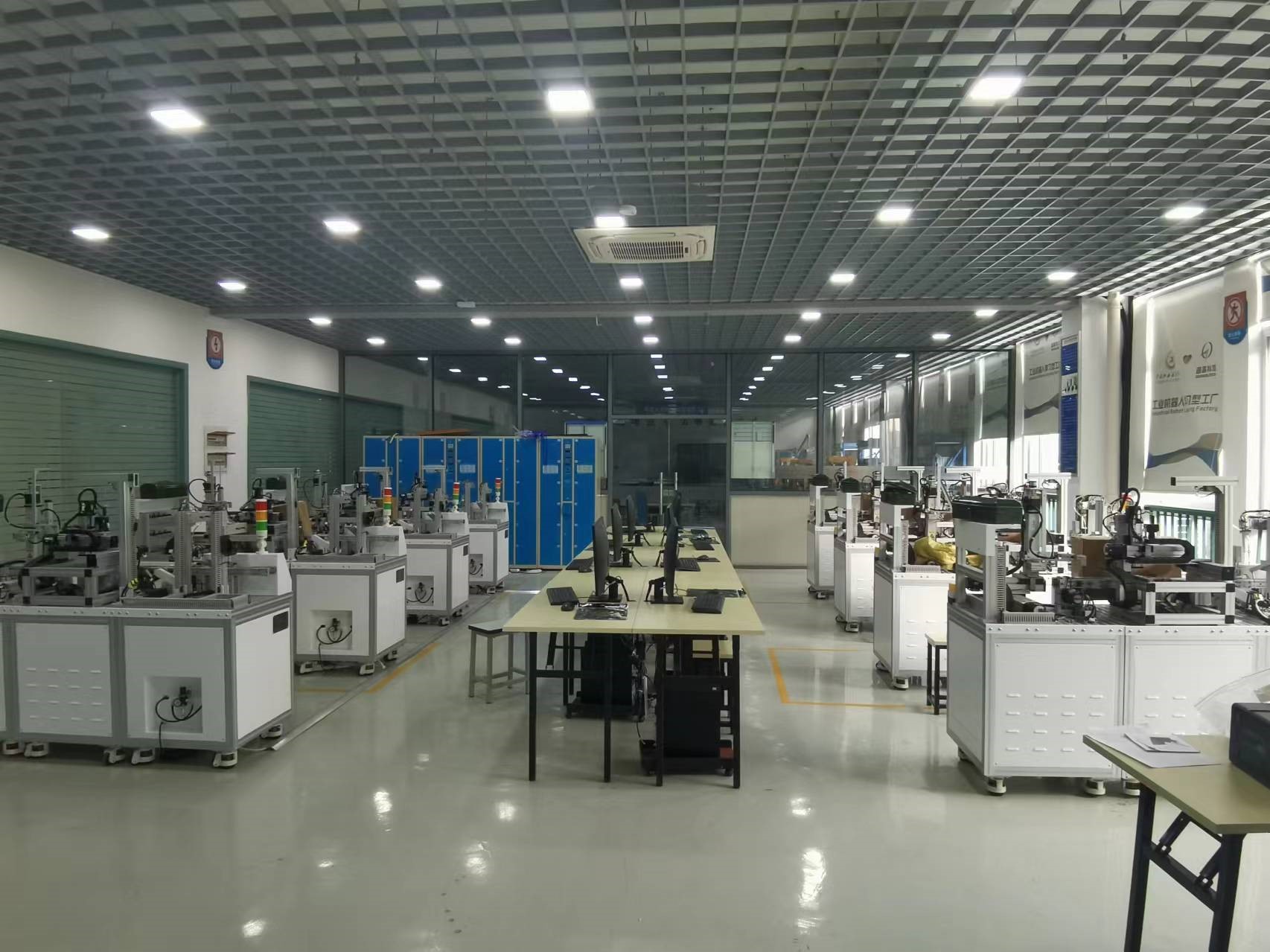 同学们,为了能让你们得到知识与技能的全副武装,我们学院可花了大血本,我们的实训室都是按照德国的标准建造的,它包括了产品展示区、机加工区、机电装配区、设计区、销售区及仓库等等。这些区域具有不同的功能,当你走进一体化场地给人的第一印象就是如同走进了企业的厂房,同时也做到了动静分离,你既可以有一个安静的环境去进行设计及思考,也可以一展身手大干一场。