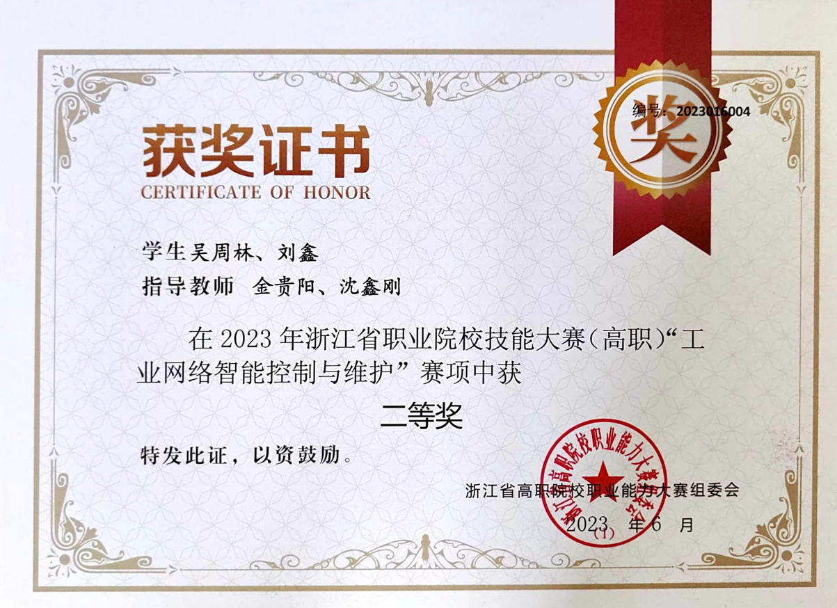 2023年浙江省职业技能竞赛“工业网络智能控制与维护”获奖